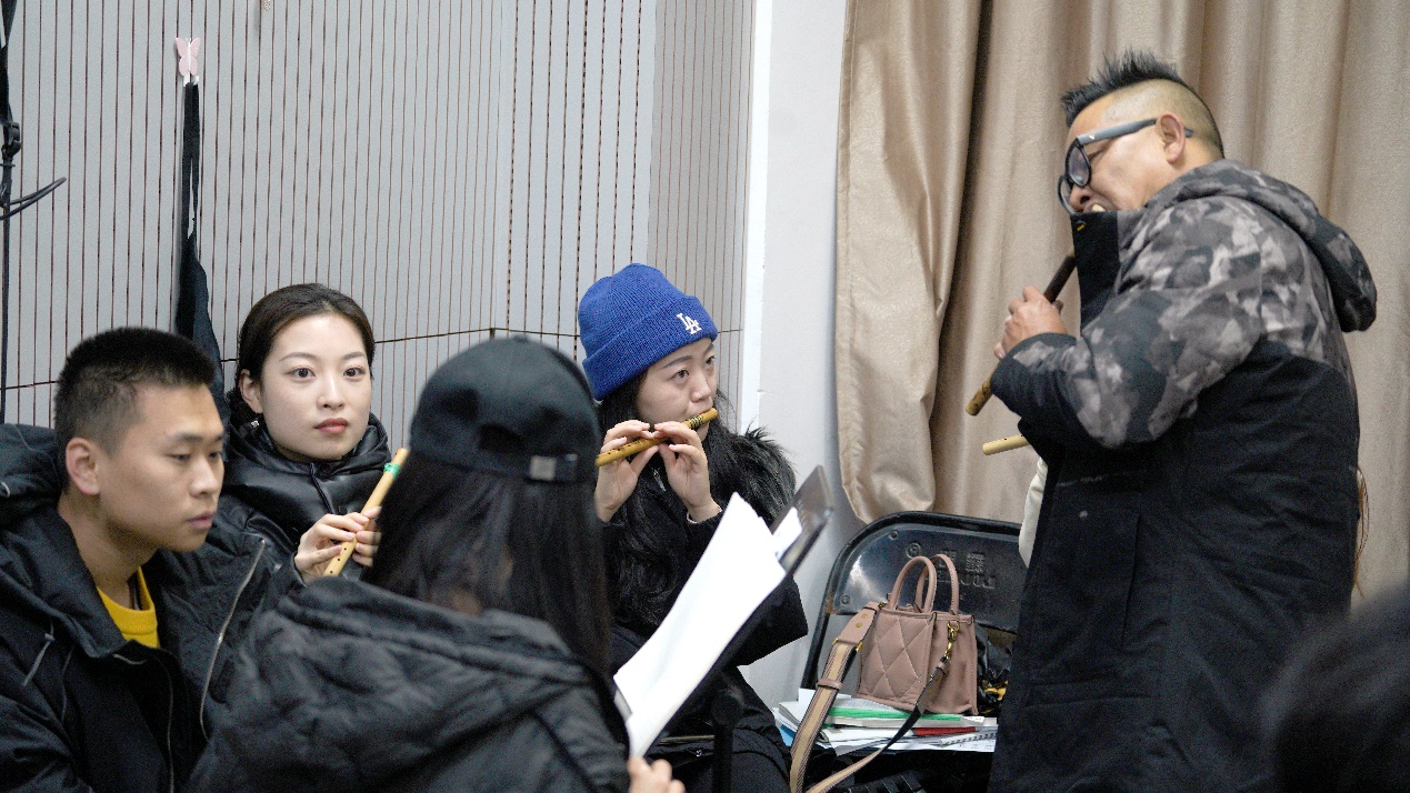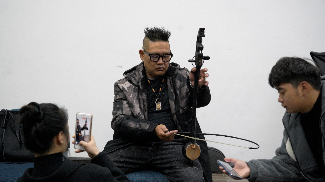 22日下午,临沧市耿马县文化馆馆长王峰带领的民族文化工作队民间艺人与云艺师生进行了傣族民间音乐的校园传承。此行成员计21人,兼具了声乐、器乐、舞蹈等各方面。在民间,工作队平时的演出除一般文艺展演外,在一些重大节日(如泼水节、开门节等)时也会进行展演活动。值得注意的是,艺人们传受的曲子均为世代相传的传统乐种,学习时为口传心授。