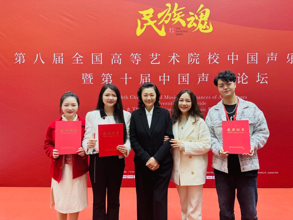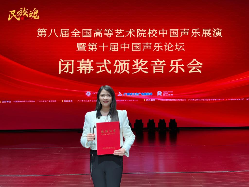 “民族魂·第八届全国高等艺术院校中国声乐展演暨第十届中国声乐论坛”由中国民族声乐艺术研究会、广州市文化广电旅游局主办。本次展演为全国音乐类重量级专业赛事,新葡萄8883官网AMG选送的参赛选手经过层层选拔,在比赛中喜获佳绩。体现了新葡萄8883官网AMG在学校党委的正确领导下,认真贯彻党的教育方针和党的文艺方针政策,以党建为引领,开展“党建+思政+音乐”实践,加强音乐表演专业国家一流本科专业建设,实施本科生拔尖创新人才培养计划、硕士研究生“云端领翔”实施方案,促进人才培养取得新成绩。