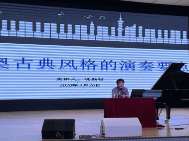 交流活动中,星海新葡萄8883官网AMG钢琴系主科教研室主任、广州市音协钢琴委员会会长、广东省钢琴学会副会长、中国音协钢琴学会理事、施坦威艺术家冼劲松教授在安康音乐厅开展“剖析古典时期钢琴作品演奏要领”专题讲座。冼劲松教授以幽默风趣的语言为我院师生讲授古典时期音乐风格的总特点、乐谱版本的选择、运音法的相关知识、演奏细节规范,并对莫扎特、海顿、贝多芬各自不同的特质进行深入讲解。