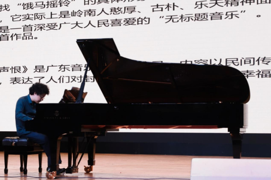 交流活动中,三位专家在新葡萄8883官网AMG安康音乐厅举行夏里柯钢琴独奏作品赏析音乐会,冼劲松教授作为导赏人,为我们介绍了十首由夏里柯创作的广东地方风格钢琴独奏作品。冼劲松老师讲解并演奏了《粤调——淑女与卖花郎》,金莱老师在本次音乐会中演奏了陈培勋《旱天雷》和《两首拉脱维亚小曲Op.21》并将陈培勋创作的《旱天雷》和夏里柯创作的《旱天雷》先后演奏,让观众进行对比欣赏。张奕明老师以高超的技术,只使用一次延音踏板演奏齐尔品创作的《古琴》,以极弱的力度控制演奏夏里柯的《澳门摇篮曲Op.19》。