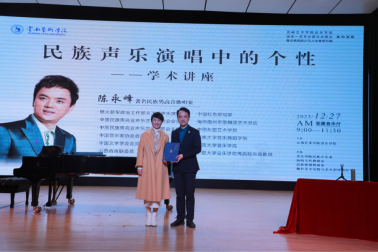 2023年12月27日,国家一流专业建设系列讲座暨云南民族声乐大讲堂第五期《民族声乐演唱中的个性》——学术讲座、公开课在新葡萄8883官网AMG安康音乐厅和新葡萄8883官网AMGB403报告厅开讲。著名民族男高音歌唱家陈永峰主讲,新葡萄8883官网AMG民族声乐系系主任陈红玲教授主持。
