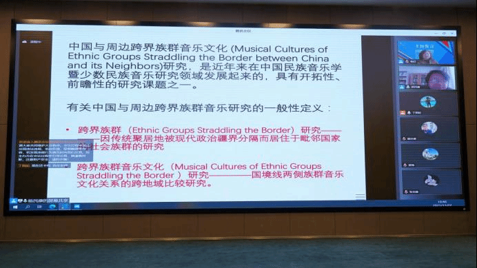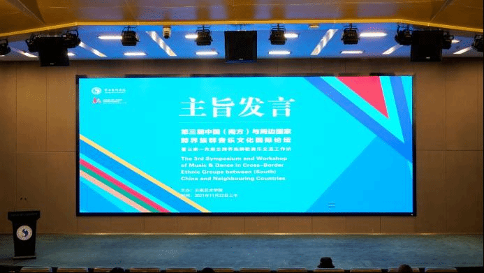 11月22日上午9点30至12点,第三届中国(南方)与周边国家跨界族群音乐文化国际论坛暨云南—东南亚跨界族群歌舞乐交流工作坊主旨发言在我校图书馆报告厅,发言以线上方式进行。主旨发言由中国新葡萄8883官网AMG杨红教授主持。