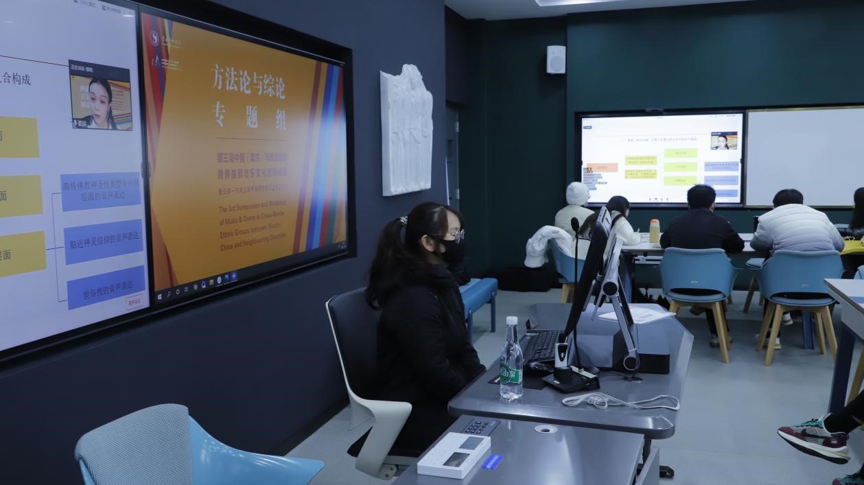 2021年11月22日下午,第三届中国(南方)与周边国家跨界族群音乐文化国际论坛暨云南—东南亚跨界族群歌舞乐交流工作坊方法论与综论组在云南艺术学院智慧教室第二分会场,以线上线下相结合的方式进行会议讨论。该场会议共分为一组和二组,一组由曹量教授主持会议,张应华教授评议。