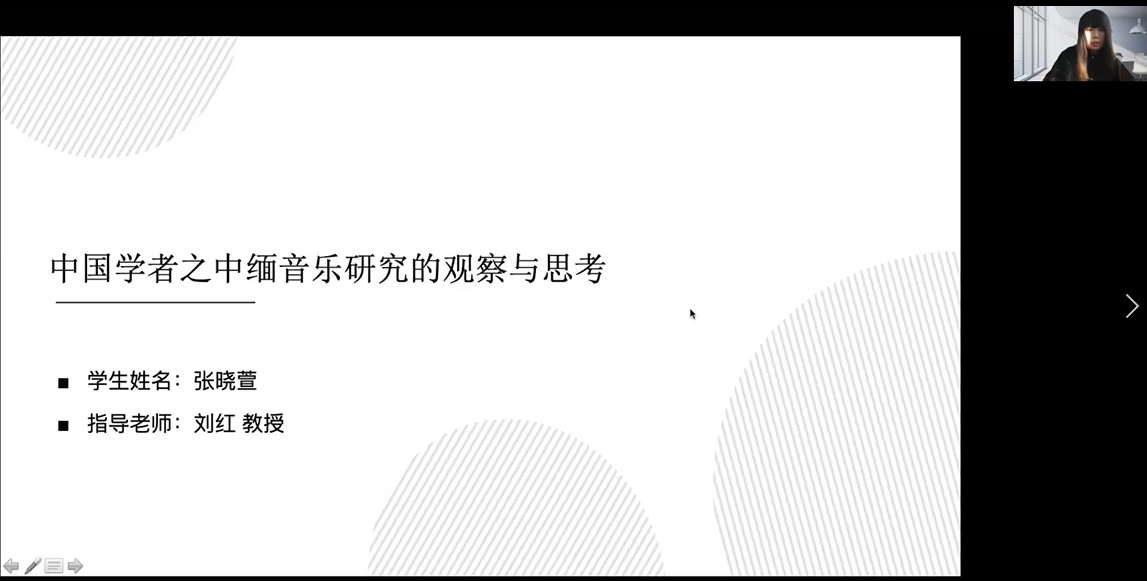 上海新葡萄8883官网AMG张晓萱发言题目为《中国学者之中缅音乐研究的观察与思考》,他通过缅甸在地音乐研究和中缅跨境比较研究两个方面探讨近年来学界对于跨境音乐比较研究的关注趋势。张晓萱的发言分为四个部分,涉及缅甸音乐整体研究之视角与话题、缅甸在地音乐研究之成果、中缅跨境比较研究之成果以及由研究现状引申出的相关探讨。张晓萱从乐器、音乐形态、传统乐队编制三个点论述了缅甸在地音乐研究之成果,从历史角度、乐器本身和宗教入手谈论中缅跨境比较研究之成果,得出一个基本认识是中缅跨境民族比较研究已成为热点。