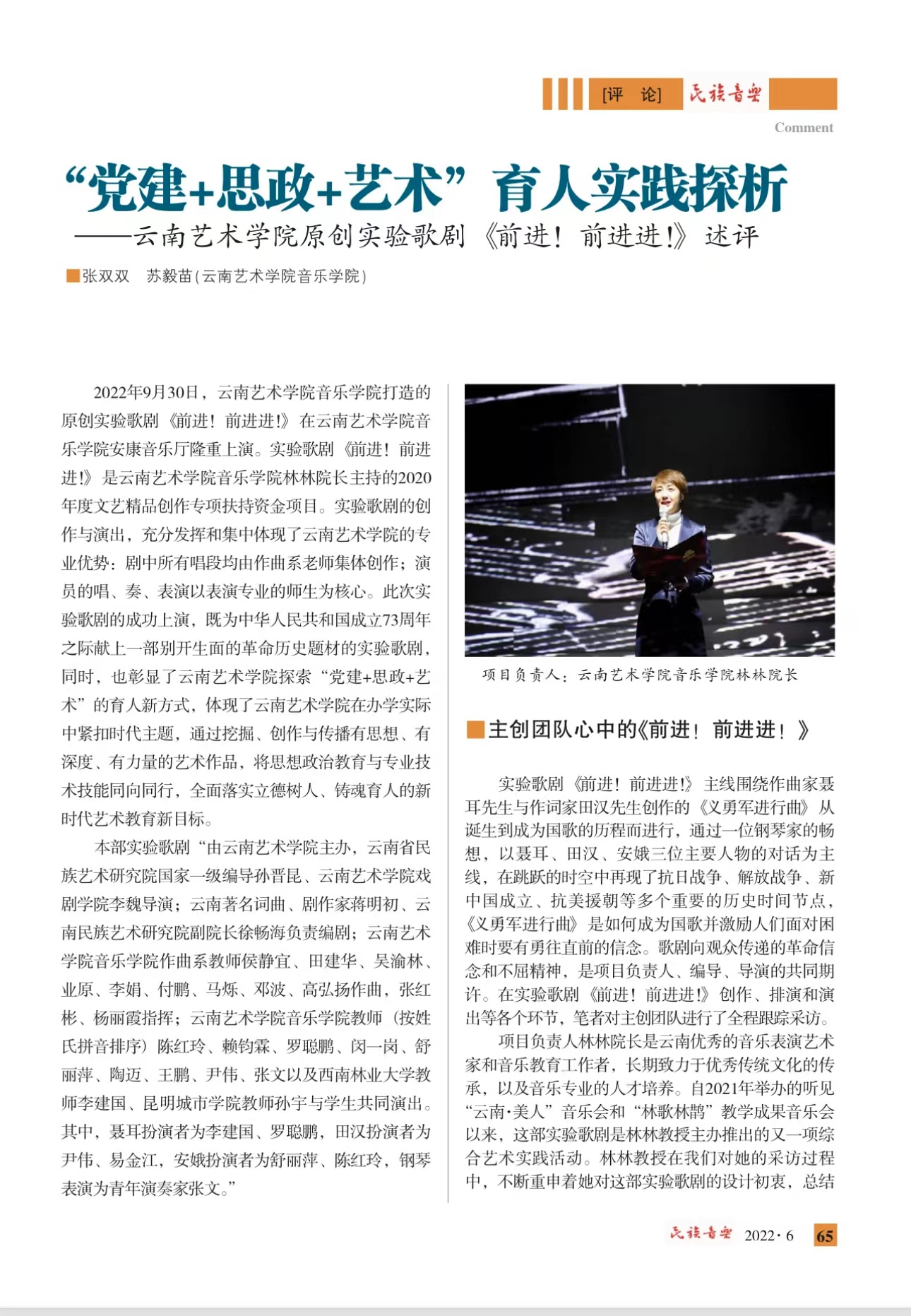 “党建+思政+艺术”育人实践探析——云南艺术学院原创实验歌剧《前进!前进进!》述评(转载自《民族音乐》)