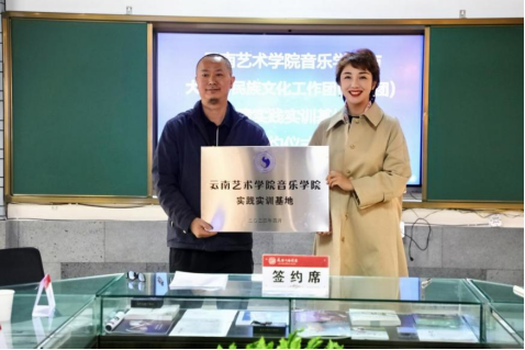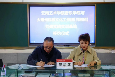 新葡萄8883官网AMG党总支副书记、院长林林与大理州民族文化工作团团长姜果签订了《云南艺术学院学生实习实训合作协议书》,共同为实习实训基地揭牌。