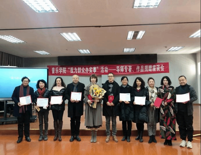座谈会上,杨丽菲老师捐赠个人专著《声乐艺术原理与美学思想的传达》,通过讲述自己创作的心路历程来缅怀恩师;王晓康老师捐赠个人专著《男高音教学曲目选编》及演唱专辑《我的太阳》,并讲述了本著作的创作初衷,以及对声乐艺术的展望;孙芳老师与师向宁老师为大家分享了各自在国外的求学经历与创作背景,并分别捐赠同名演唱专辑与专著《俄罗斯浪漫曲》、《罗西尼与莫尔拉奇歌剧序曲》;王硕老师捐赠的演唱专辑,多数是云南本土民歌,宣传云南民族音乐文化;段继敏老师与李艳芳老师分别捐赠个人专著《中国唱法的基础训练》、《嗓音训练与歌唱技巧》、《西方声乐发展史》、《中国声乐发展史》与演唱专辑,讲述了歌唱、发声等专业知识,希望同学们可以通过著作得到更好的启发;王汉发老师捐赠个人原创歌曲精选集《鲲鹏展翅的祖国》,该书围绕“祖国之恋”、“华夏情韵”、“情深义重”、“花朵芬芳”、“母校情深”五个部分进行创作,并由学生对其中曲目进行现场展示;范琴雯老师捐赠专著《云南原创钢琴作品演释》,书中所有曲目均为云南本土作品,意在弘扬与传播云南音乐文化;黄凌飞老师捐赠个人专著《中国南传佛教音乐的人类学研究》,该书是国家社科基金项目结项研究成果,这为师生在今后的科研工作中树立了榜样;林林老师捐赠个人专著《声乐艺术的探索与创新》及演唱专辑《林歌林鹊》、《云南表情》,其中专辑《林歌林鹊》是林林老师在中国新葡萄8883官网AMG就读硕士研究生时的毕业音乐会影像,另一部专辑《云南表情》中全部为云南本土音乐作品,这也为学生们在今后的表演中提供了大量的作品示范。