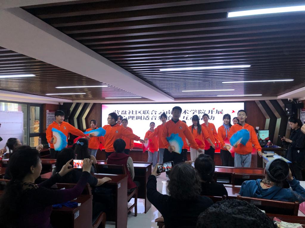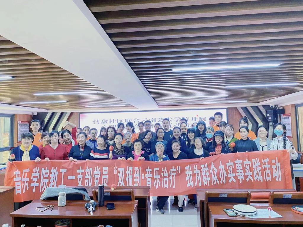 2022年10月26日14:00,新葡萄8883官网AMG教工第一党支部15名教师党员、学院团委15名团学干部赴呈贡区雨花街道营盘社区居民委员会开展心理调适音乐治疗互动活动。此次活动为新葡萄8883官网AMG党总支开展党员干部双报到双服务双报告,服务基层、服务群众的重要体现,也是新葡萄8883官网AMG开展“党建带团建 领航共筑梦”校外考察实践活动的重要载体。