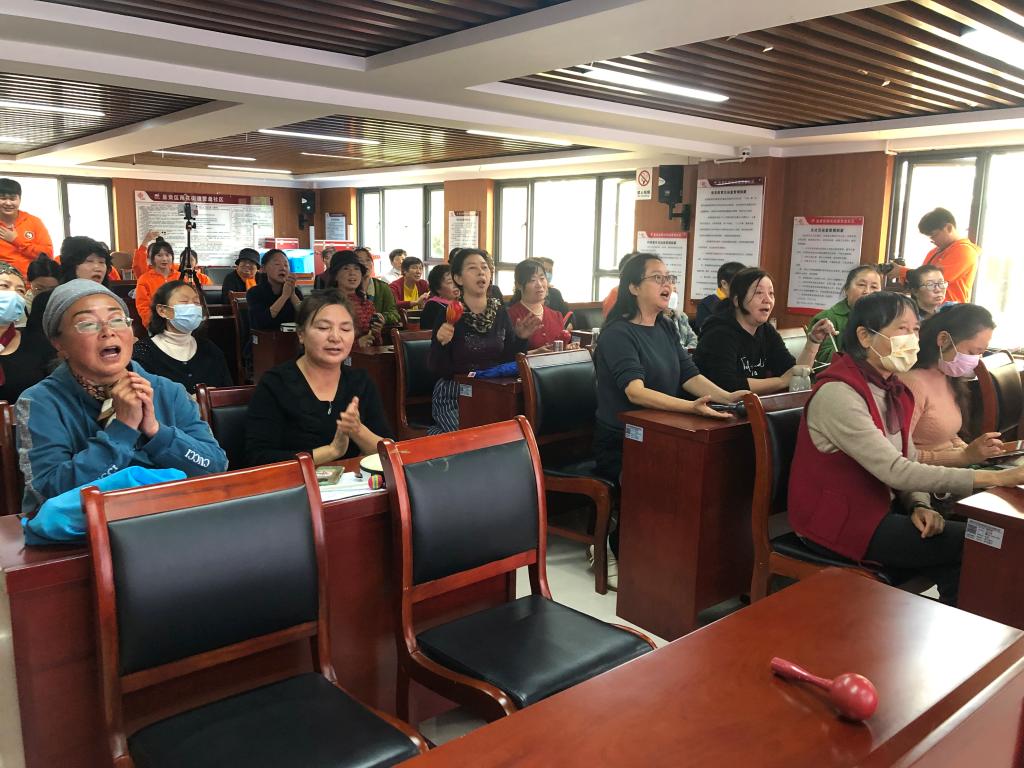 随后,开展了鼓圈音乐治疗互动活动。由新葡萄8883官网AMG1名师生担任“治疗师”,引导营盘社区居民以“治疗师”为中心围成圈,并在“治疗师”的指导下进行乐器演奏。社区居民深度融入到活动当中,活动现场氛围轻松愉悦。音乐治疗活动的最后,新葡萄8883官网AMG与营盘社区居民以歌曲《我和我的祖国》作为“再见歌”结束本次音乐治疗活动,社区居民参与度大大提高,情绪得到了较好地改善。